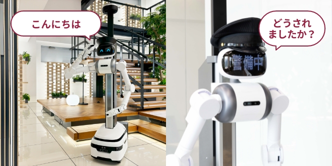 施設内の自動巡回や立哨、生成AIを活用した自動案内・多言語対応、来訪者への挨拶など、幅広い業務に対応します。